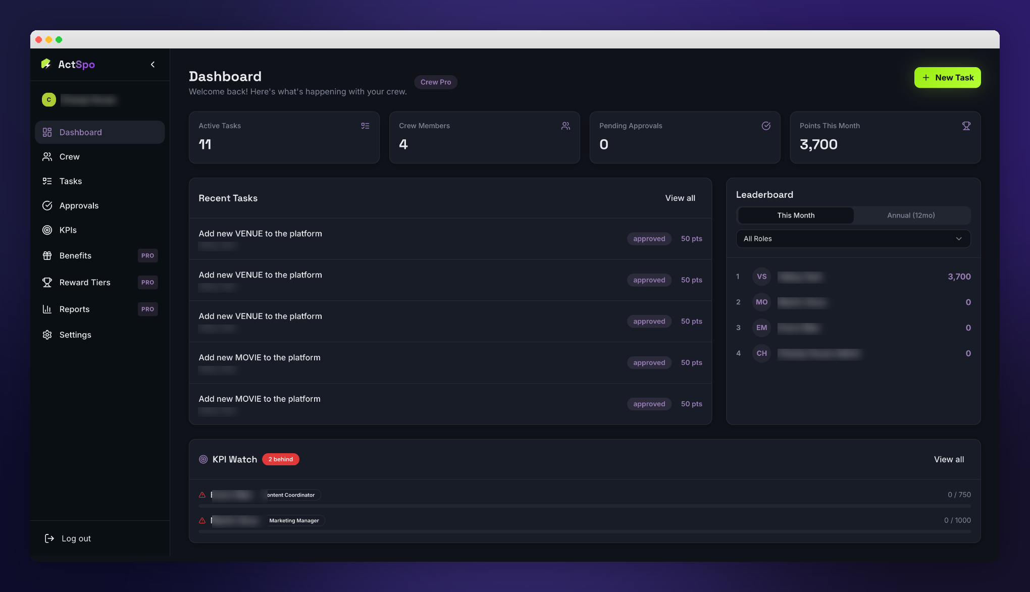 Operations dashboard for action sports teams covering rosters, training plans and analytics.